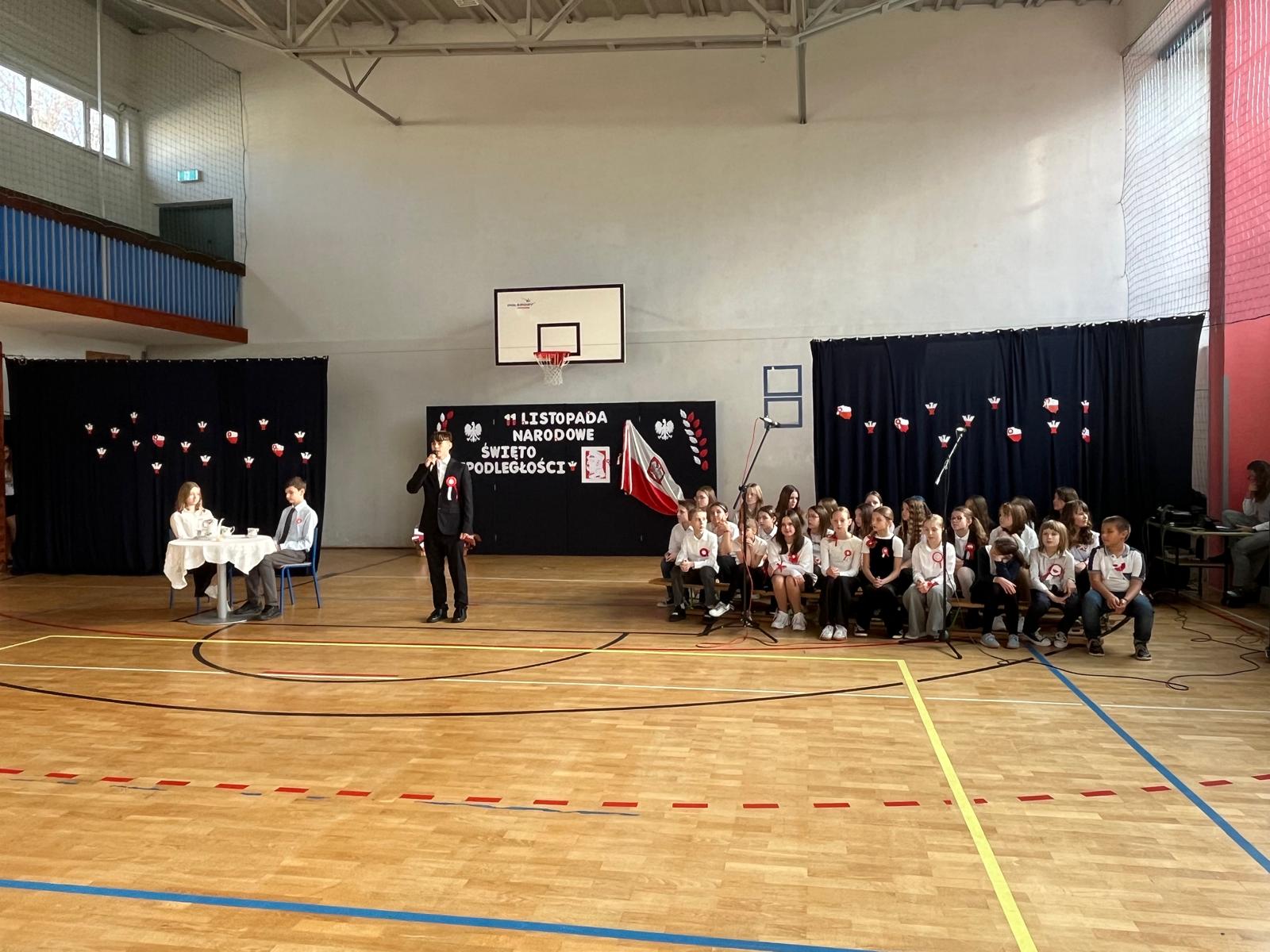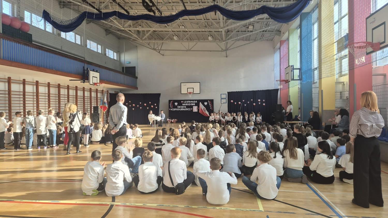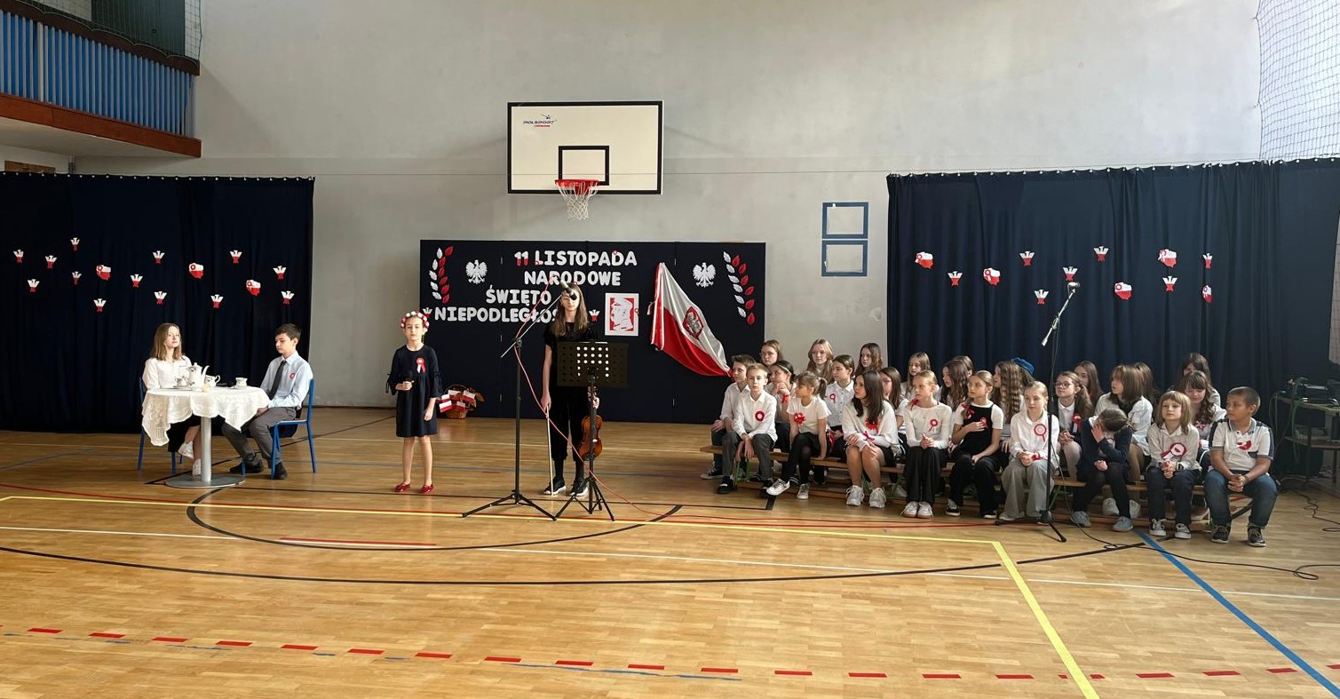 Podczas akademii uczniowie z klasy 4c, 8b i 8d recytowały wiersze poświęcone historii Polski, a szkolny chór zaśpiewał pieśni patriotyczne. Wspólnie odśpiewano także hymn państwowy.