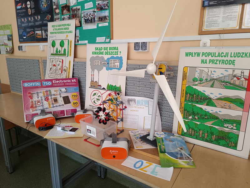 Przed lekcją były zajęcia laboratoryjne, na których uczestnicy koła "Laboratoria Przyszłości" zbudowali z zestawów technicznych modele elektrowni słonecznej, wiatrowej oraz hydrostatycznej. Podczas zajęć uczniowie mogli na żywo analizować przemiany energii. Aktywność wykazały również uczennice z klasy 7c, przygotowując ulotki edukacyjne zachęcające do wykorzystania odnawialnych źródeł energii.