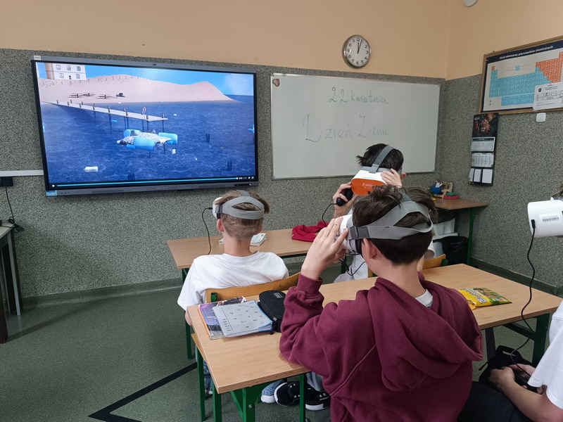 W ramach obchodów Dnia Ziemi w naszej szkole odbył się cykl innowacyjnych lekcji fizyki, podczas których uczniowie klas 7 i 8 zamienili tradycyjne podręczniki na gogle wirtualnej rzeczywistości (VR). Zajęcia, zorganizowane przy wykorzystaniu zasobów programu „Laboratoria Przyszłości” oraz projektu „Koduję, eksperymentuję, liczę”, przeniosły młodzież w świat wirtualnej rzeczywistości, pokazując, jak prawa fizyki dają nam narzędzia do walki o czystą przyszłość Ziemi.