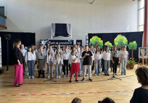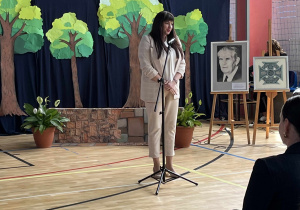 Po okolicznościowych przemówieniach rozpoczęła się część artystyczna jubileuszowych uroczystości. Przedstawienie nawiązujące do historii i najważniejszych wydarzeń związanych ze szkołą oraz postaci patrona podkreślało klimat tego wyjątkowego dnia. Wszystkich wzruszyły występy uczniów, którzy z niezwykłym zaangażowaniem śpiewali, tańczyli i grali swoje role. Atmosfera jaka towarzyszyła przedstawieniu pozostanie na długo w pamięci uczestników wydarzenia.
