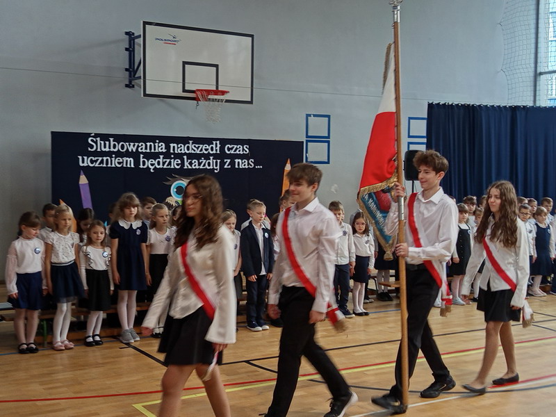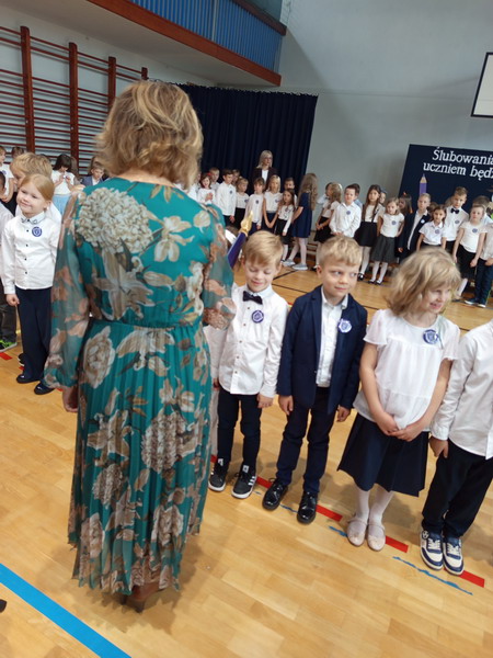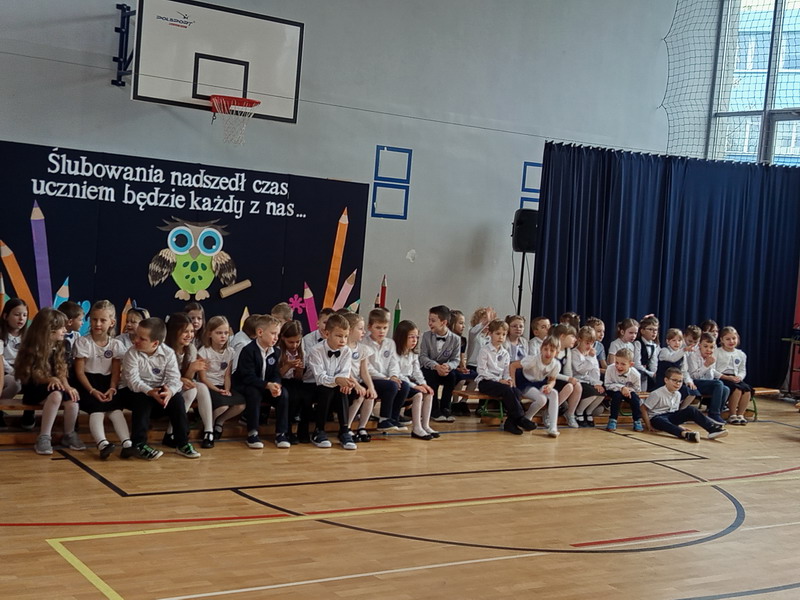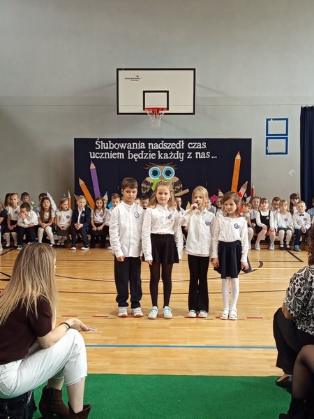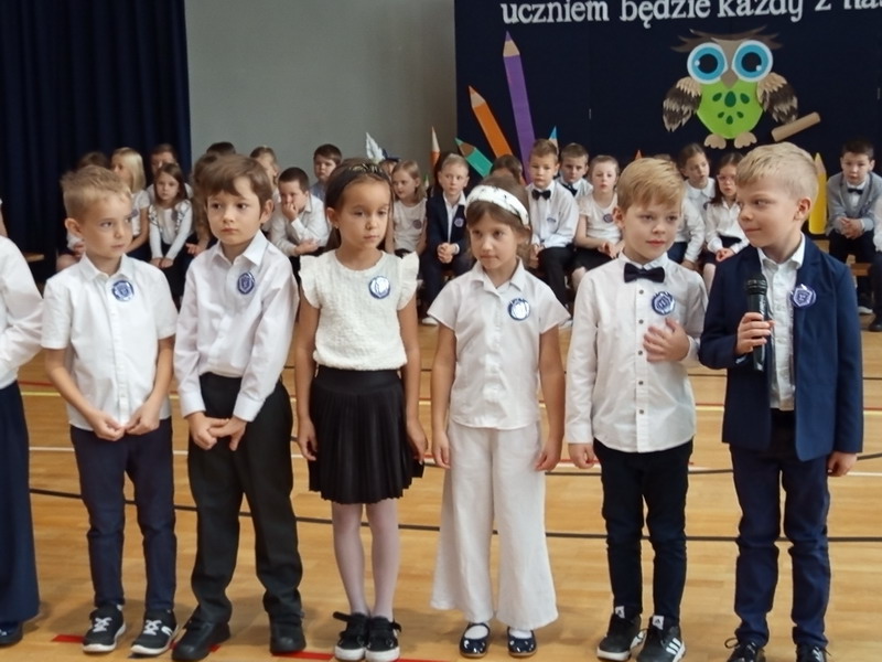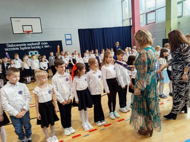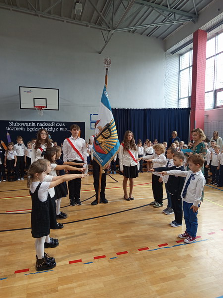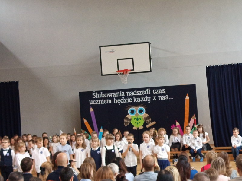 Dziś uczniowie klas pierwszych, oficjalnie dołączyli do grona szkolnej społeczności. Ślubowali jak być dobrym uczniem, dbać o imię szkoły i kochać swoją Ojczyznę. Tradycją naszej szkoły jest to, że uroczystość ta, odbywa Dniu edukacji Narodowej.