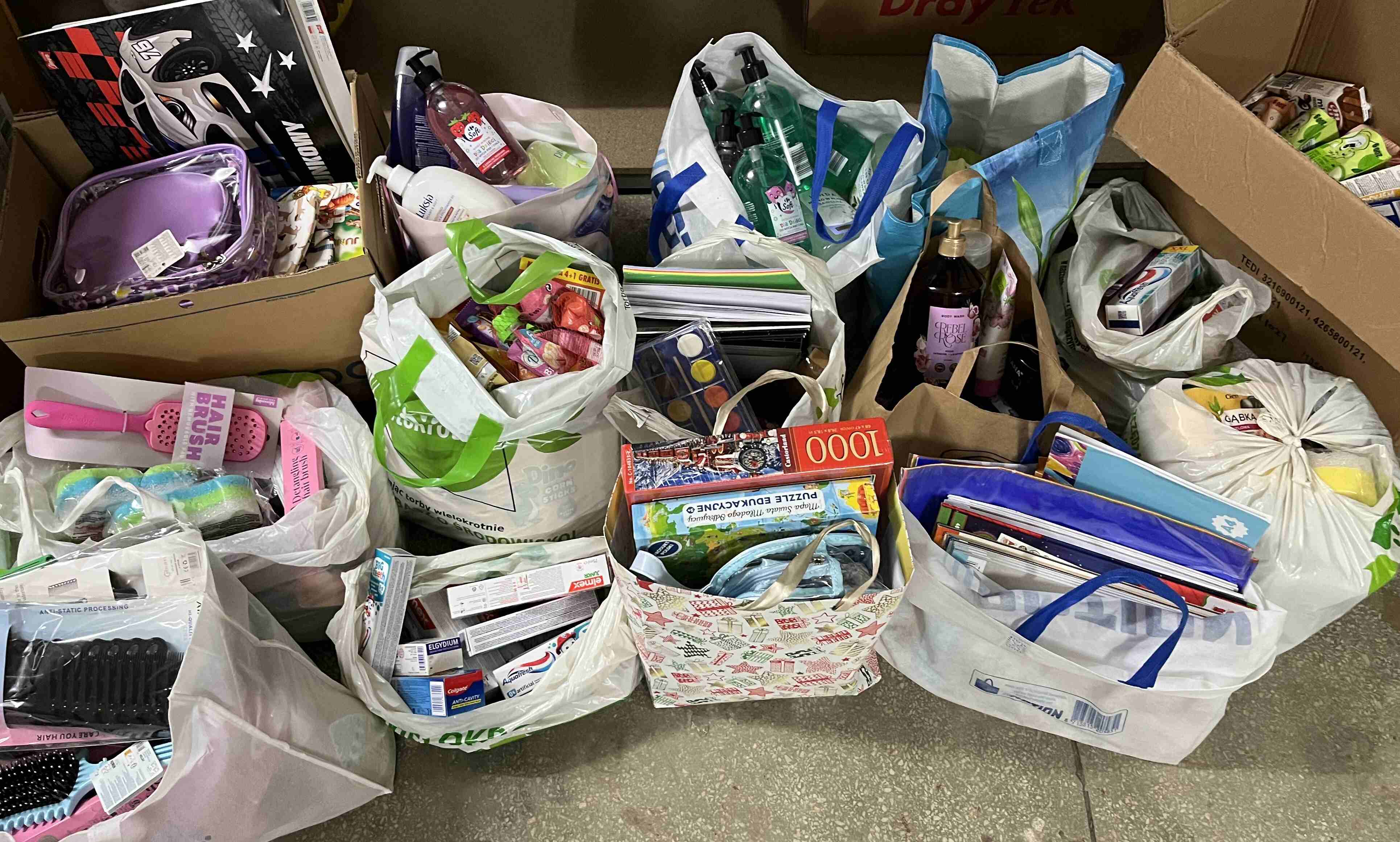 Dzięki ofiarności i życzliwości tak wielu osób udało się zebrać mnóstwo artykułów chemicznych, kosmetyków, słodyczy i artykułów papierniczych.