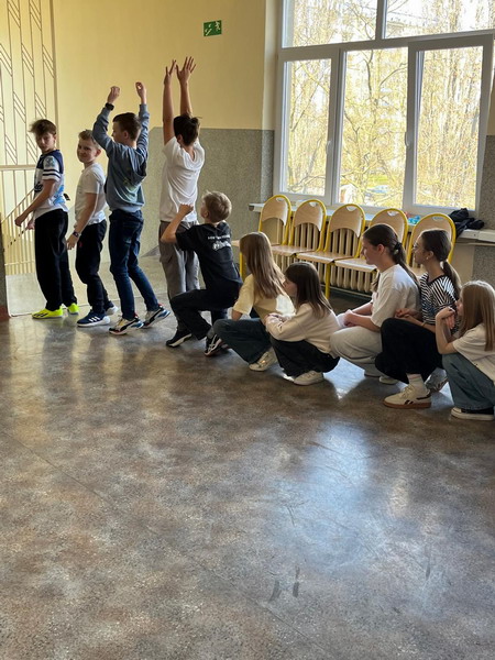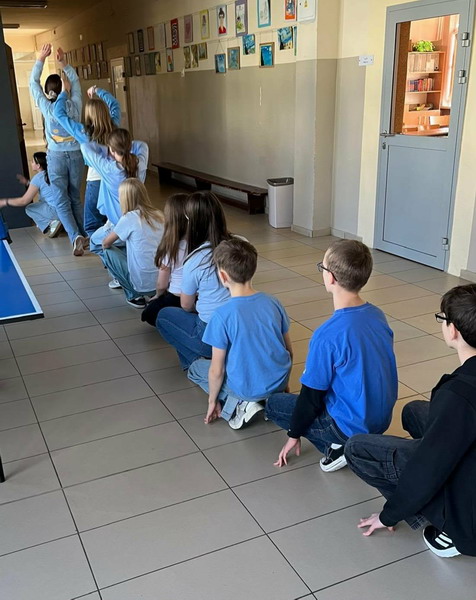 Na zakończenie zorganizowaliśmy wspólną szkolną falę, która przetoczyła się przez korytarze niczym prawdziwy ocean!