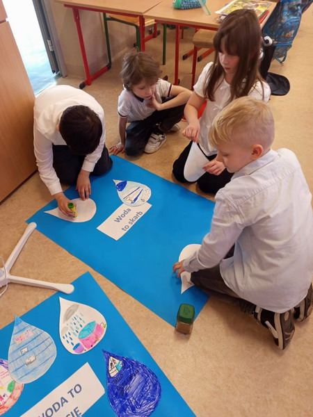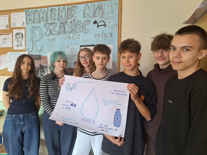 Kolejnym ważnym elementem było tworzenie wspólnych plakatów. Pracując w grupach, rozwijaliśmy również swoją wiedzę na temat znaczenia wody w życiu człowieka, przyrody i całej planety.