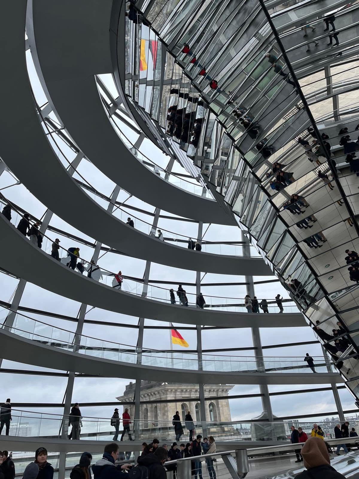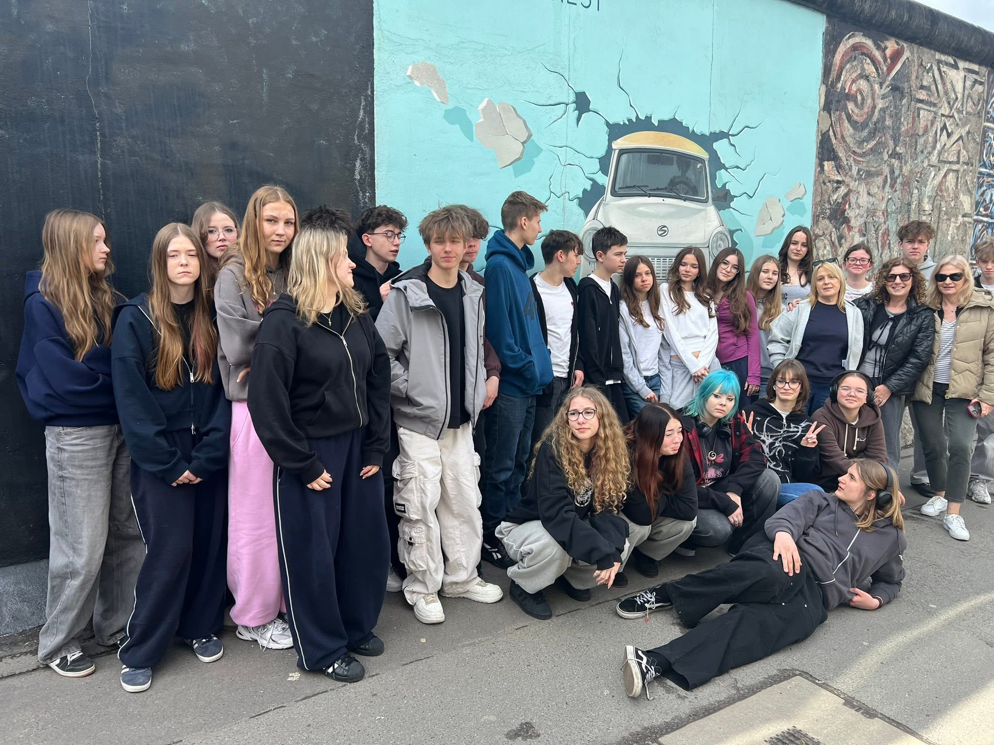 Na Placu Poczdamskim czekała na wszystkich kolejna atrakcja - wjazd jedną z najszybszych wind w Europie na punkt widokowy „Panorama Punkt” znajdujący w budynku Kollhoff Tower. Szybka winda zabrała wycieczkę na górę w zaledwie 20 sekund, pokonując 24 piętra. Ostatniego dnia ósmoklasiści zwiedzili Muzeum Techniki, gdzie historia spotyka się z innowacją oraz East Side Gallery – najdłuższy zachowany fragment Muru Berlińskiego, będący dziś symbolem wolności i przemian politycznych w Europie. To ostatnie miejsce stanowiło istotny element realizowanego projektu, umożliwiając uczniom bezpośredni kontakt z historią oraz refleksję nad znaczeniem wydarzeń okresu zimnej wojny.