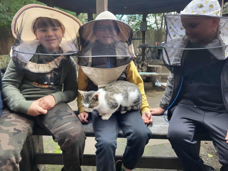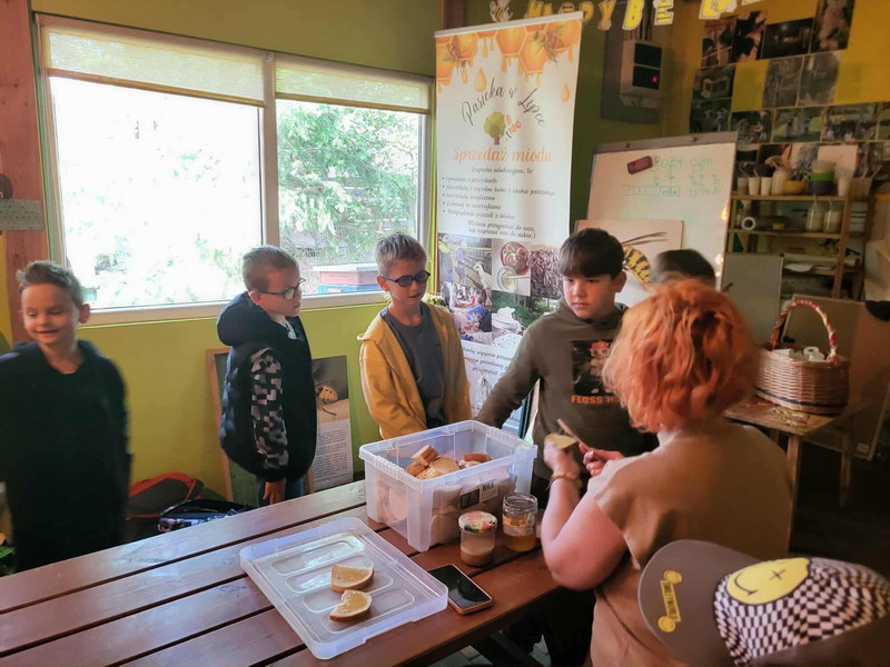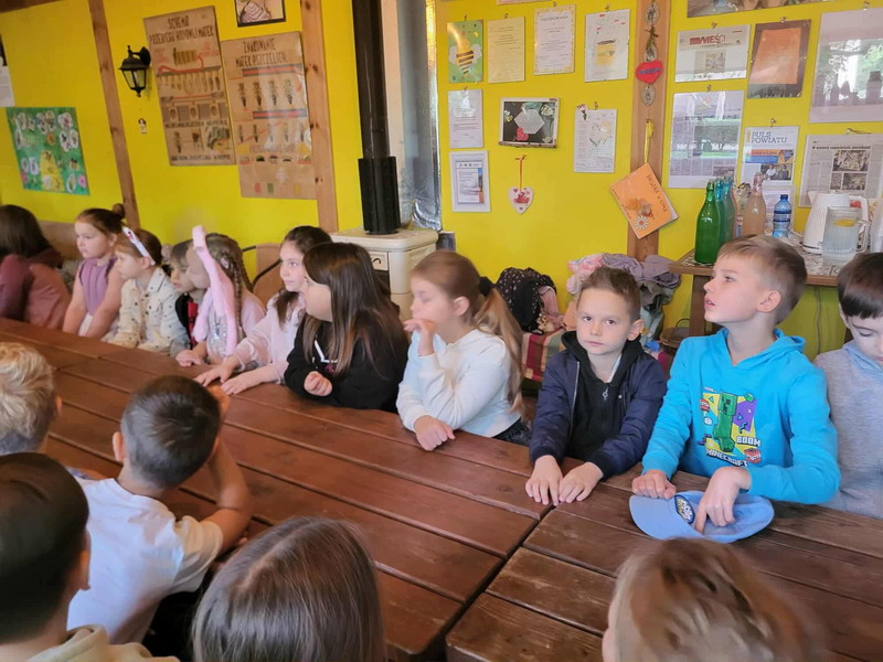 Nie zabrakło również słodkich wrażeń – uczniowie mieli okazję spróbować pysznego miodu oraz własnoręcznie wykonać świece z wosku pszczelego. To wyjątkowe doświadczenie sprawiło im wiele radości i pozwoliło lepiej zrozumieć, jak cenne są produkty, które zawdzięczamy pszczołom.